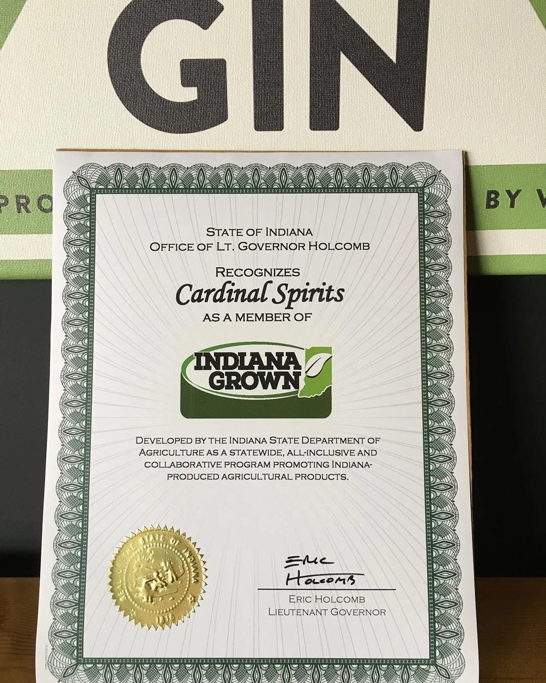 So fancy! So official! We are proud to be a member of @indiana_grown #buyindiana #craftspirits #distillery via Instagram http://ift.tt/1UZ0m89